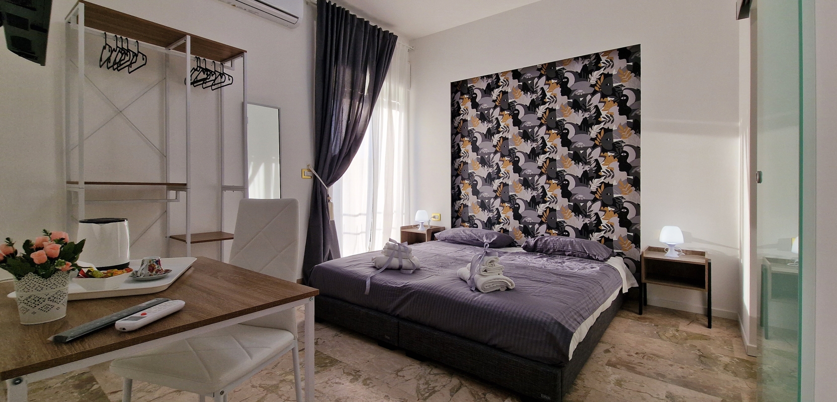La camera dispone inoltre di un balcone privato con vista sull’ Etna e dei seguenti comfort: